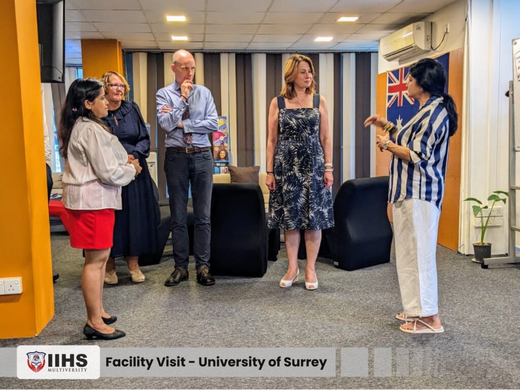 During their visit, the delegation toured IIHS’s state-of-the-art teaching and learning facilities, met with academic staff and students, and engaged in in-depth discussions with the leadership team on expanding academic pathways, enhancing curriculum quality, and reinforcing student support systems. Their presence underscored the University of Surrey’s strong commitment to fostering global academic partnerships and supporting IIHS in aligning its programmes with international benchmarks. The launch of this collaboration sets the stage for joint academic development, quality assurance enhancement, and strengthened governance practices across shared programmes.
